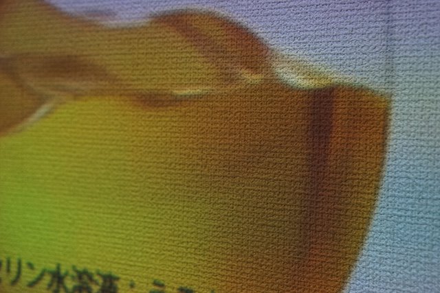 近距離から撮影すると、画素よりも壁紙のエンボスの方が目立つ