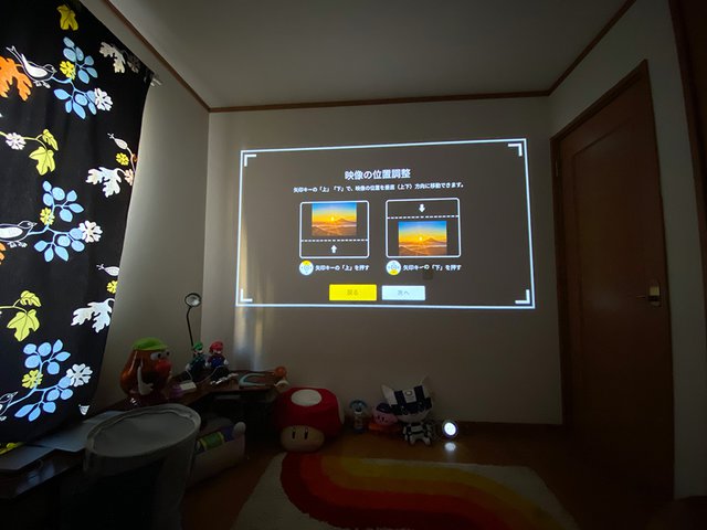 初期設定で画面の上下位置を動かしているところ。壁の一番上まで移動できるのには驚いた