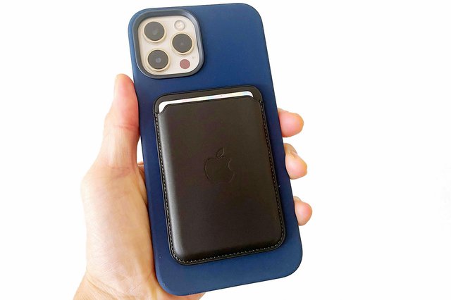 iPhone 12 Pro Maxに純正のシリコンケースを装着。レザー・ウォレットはアップル純正のシリコンケースの上に合体できる