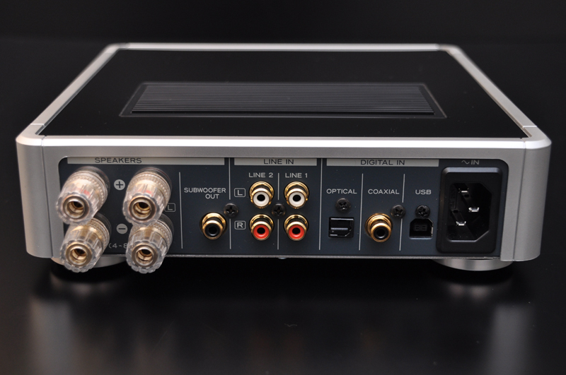 背面にはデジタルオーディオ入力としてUSBとSPDIFを搭載。スピーカー端子は金メッキ処理の大型スクリュー式端子を採用する。電源ケーブルは着脱式