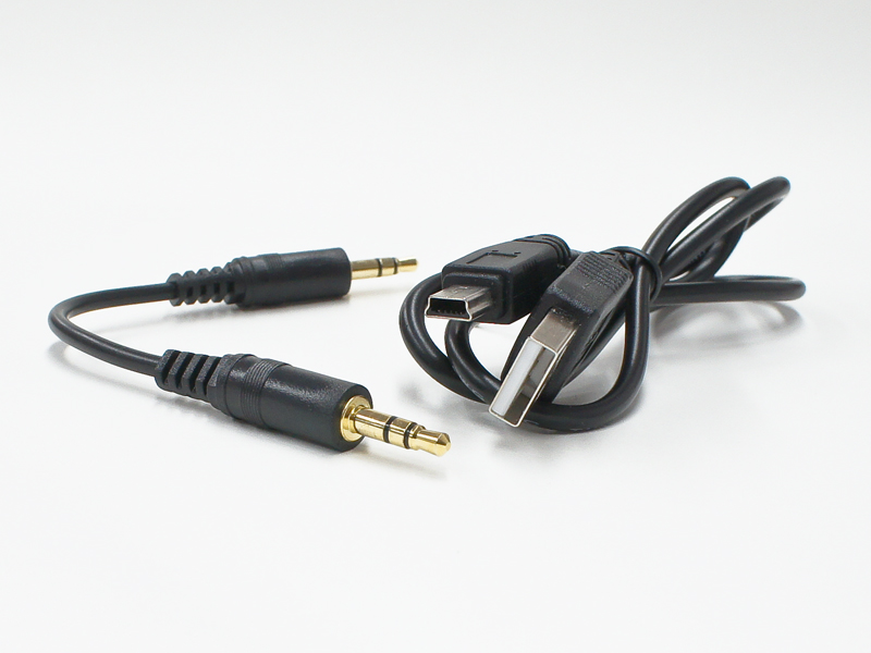 本体付属品のステレオミニプラグケーブル、充電用USBケーブル