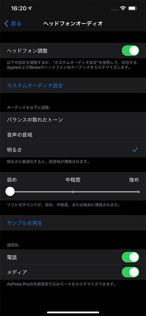 アクセシビリティの「ヘッドフォン調整」からAirPods Maxのサウンドがカスタマイズできる