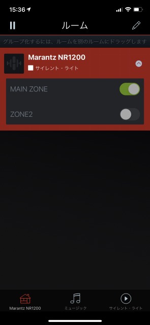 HEOSアプリの「MAIN ZONE」スイッチでNR1200をON/OFFできる