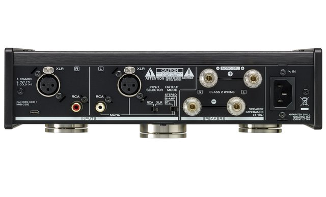 AP-505の背面。RCA、XLR入力を1系統ずつ搭載、切り替えスイッチも背面に搭載する