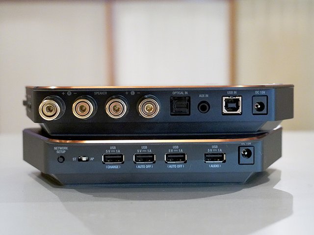 背面端子部(上:USB DACアンプ/下:ワイヤレスユニット)