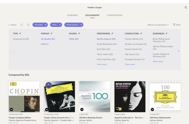 Chopinから絞り込んでいったところ。マルタ・アルゲリッチのアバドとの演奏といった具体的な絞り込みも可能になっている