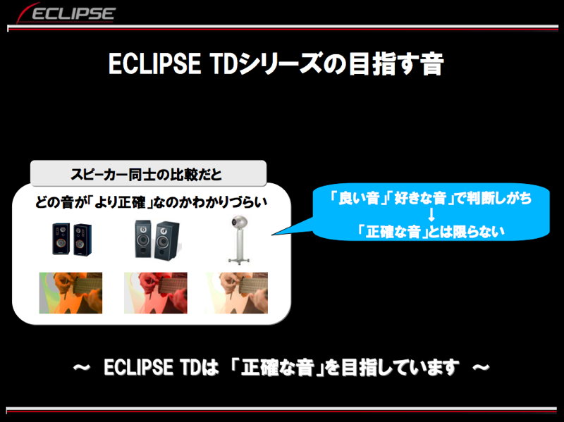 ECLIPSEの資料より抜粋。「良い音」「好きな音」といった主観評価ではなく「正確な音」を目指している