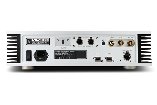 「W20 SE」の背面端子。USB出力に加え、dCSなどに搭載されるデュアルAES出力が可能なことが特徴