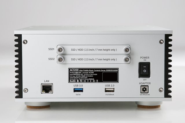 「ACS10」の背面端子。2基のストレージスロットを搭載。USB出力で手持ちのUSB-DACと接続できる