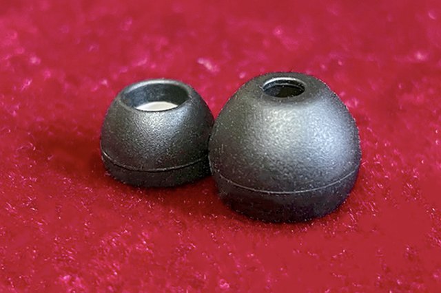 イヤピを小さめに!写真左、傘が低く柔らかめなfinal「TYPE E 完全ワイヤレス専用仕様イヤーピース」は通話用としてもおすすめ