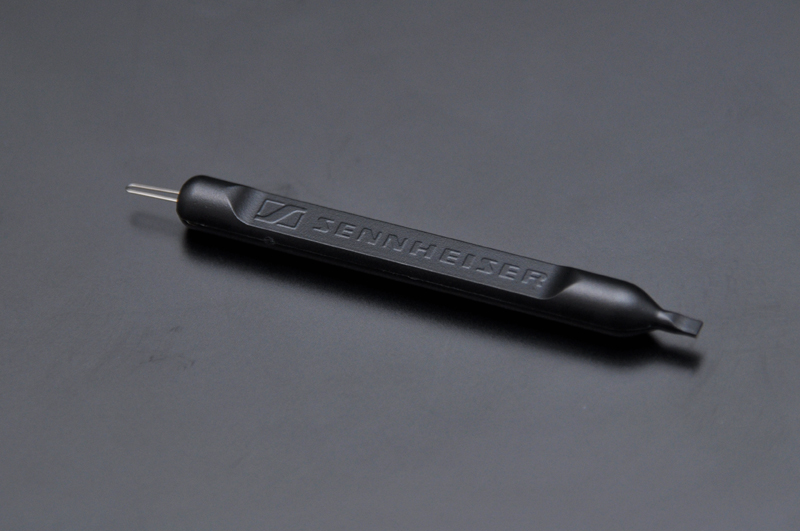 専用クリーナーは、片側の端がドライバー状になっており、本機独自のベースコントロール機能のダイヤル調整が行える