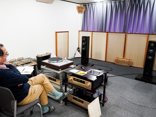 SOLANO FS 287で試聴を行う井上氏。厚手の質感を保ったサウンドが表出する