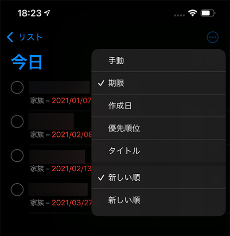 リマインダーに並び替え機能がつく