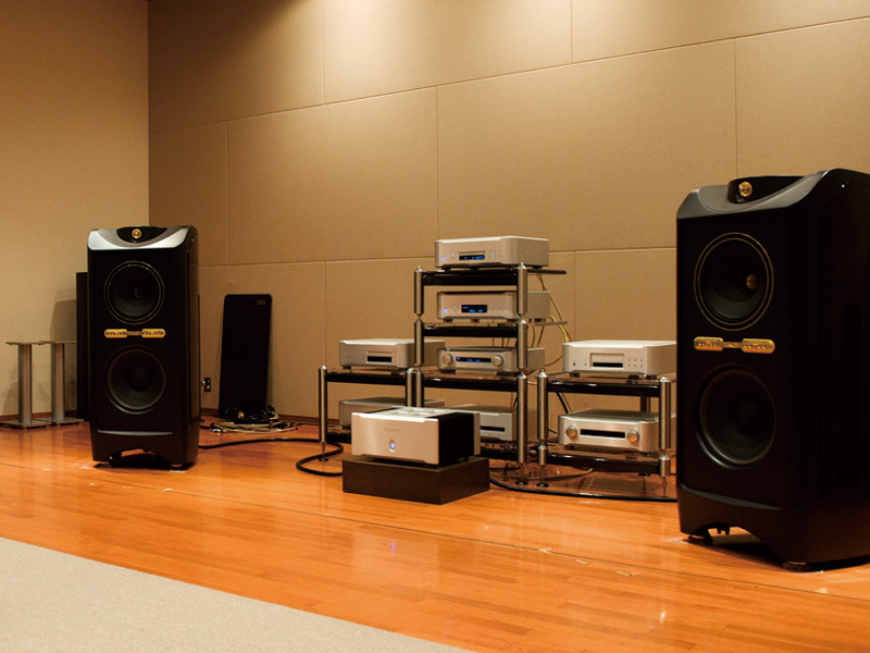 今回の試聴はエソテックの試聴室にて行われた。アンプにはエソテリックのC-03とA-02、スピーカーにはタンノイのKingdom Royalを組み合わせた