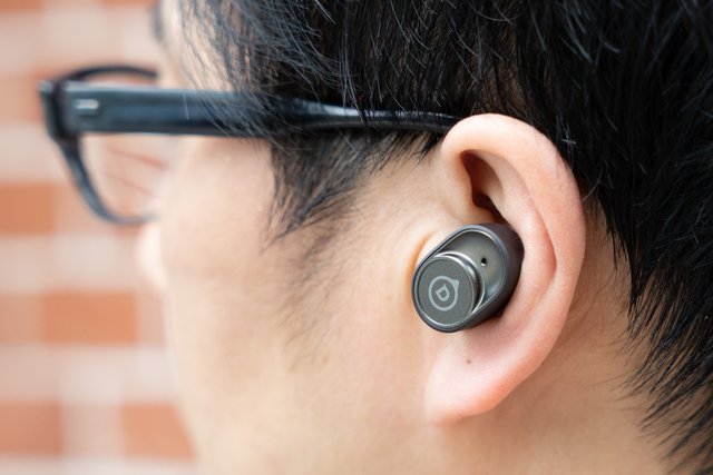 装着したところ。フィット感も良好。音楽再生中、音楽信号を常に最適化し続ける