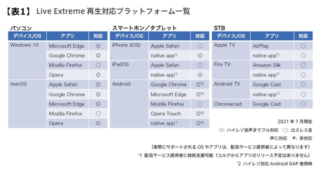 Live Extreme再生対応プラットフォーム一覧
