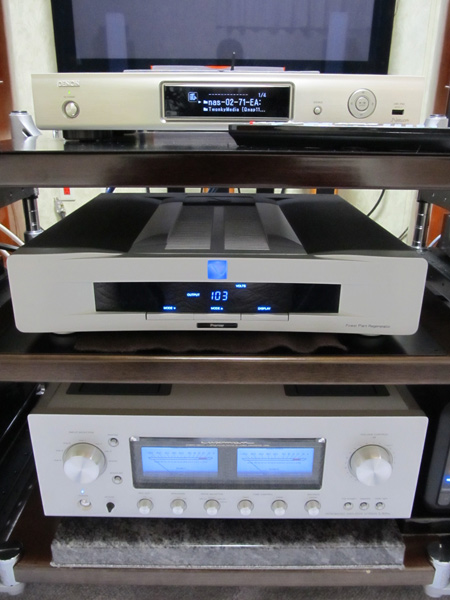 PS Audio「Power Plant Premier」(中段)とLUXMAN「L-509u」(下段)
