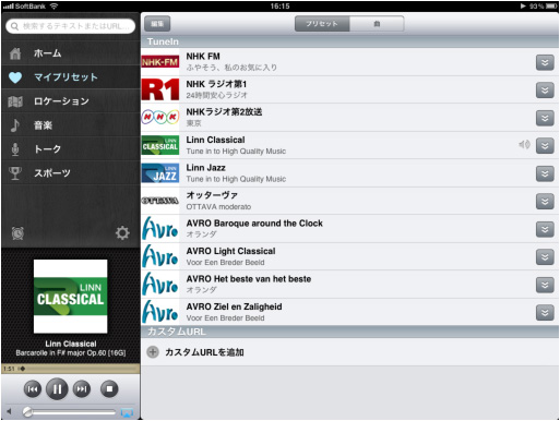 同じくiPad2でAirPlay再生中の「TuneInRadio」