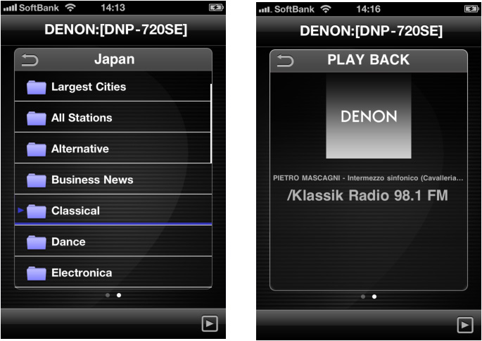 Internet Radio再生中のDNP-720SEフロントパネルの表示