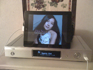 リビングのAVボードの上に設置した720SEフロントパネルのUSB端子にiPad 2をデジタル接続し、お気に入りのJazz Singer