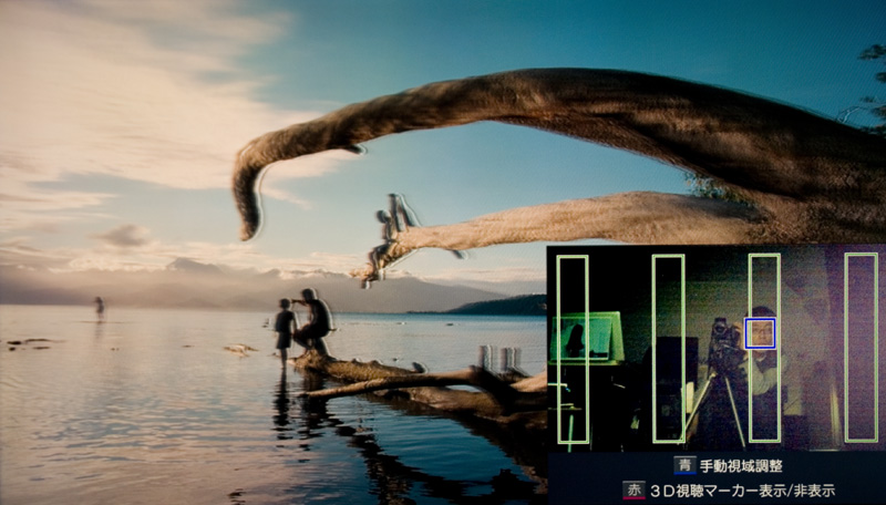 トラッキングに成功した場合(緑枠の3D視聴エリアに顔がある)