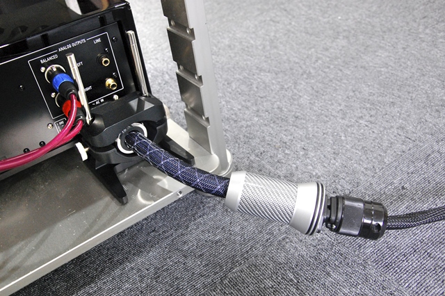 装着した「Flux-50 NCF(G) Filter」に、さらに「NCF Booster」を使用した例。端子部を支持することで、音質を大きく向上することができる