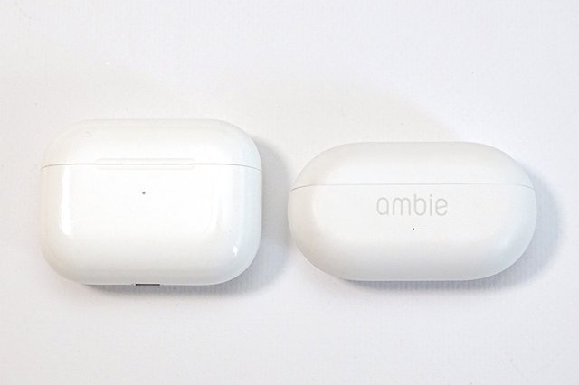 左側はAirPods Proの充電ケース。右側TW-01の充電ケースはイヤホンを3回までフルに充電できる