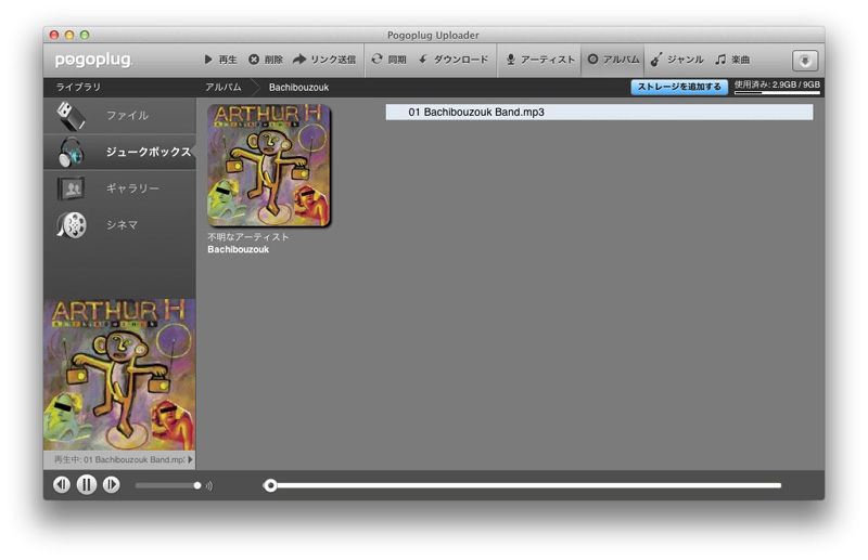 「Pogoplugブラウザ」での音楽再生。ジャケット写真も表示可能