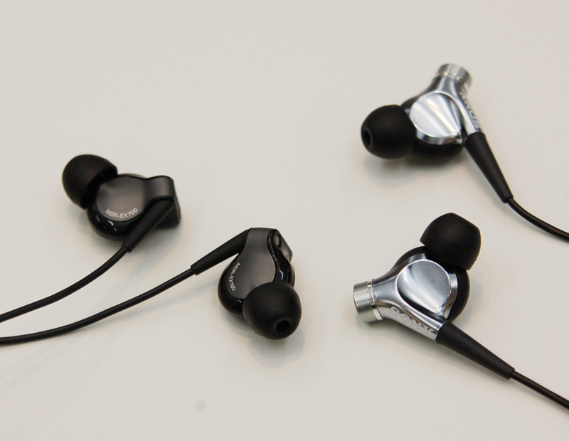 左はフラグシップモデルのインナーイヤーヘッドホン「MDR-EX700SL」