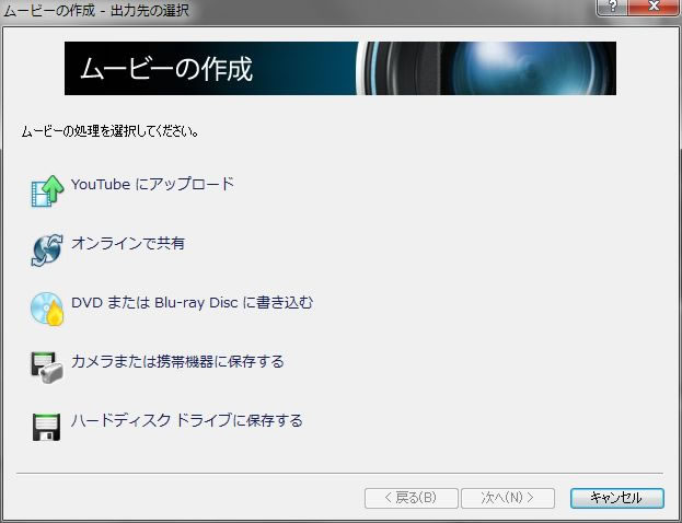 「ムービーの作成」では出力先をいろいろ選択できる