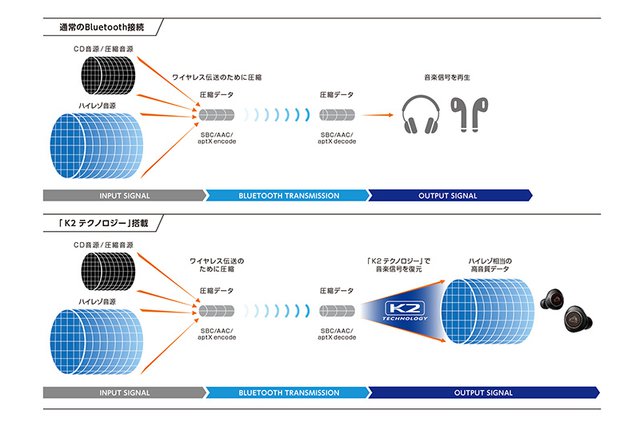 通常のBluetooth接続とK2テクノロジー適用時の違い
