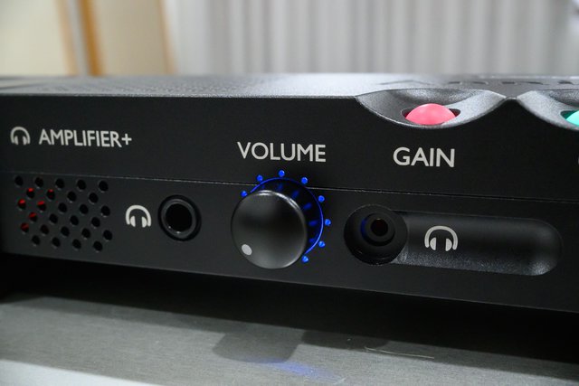 ボリュームノブを押し込むことで、入力系統の切り替えが可能。ノブ周囲のLEDの色で判別できる