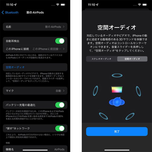 Bluetooth設定から空間オーディオの効果をプレビューできる