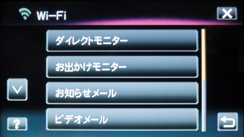 WiFiメニューを開くと、機能別に項目が一覧表示される。それぞれの設定メニューは下へスクロールさせる