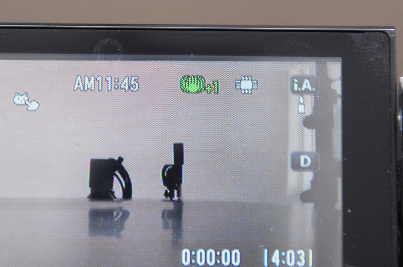 手ブレ補正機能ON時にはアイコンが点灯。光学式の手ブレ補正を採用し、ワイド端での撮影時には電子式のアクティブ補正も併用できる