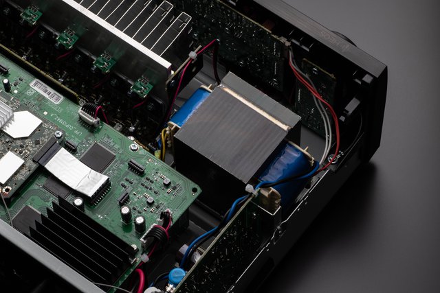 電源部にはカスタム仕様の大型EIコアトランスを搭載。エルナー製カスタムコンデンサーに変更するなど、エントリーながら「70%ルール」を達成すべくさまざまな改善がなされている