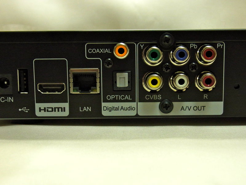 LT-V200の本体サイズは207×144×53mm。背面にはHDMI端子のほか、コンポーネント端子やS/PDIF端子も用意されている