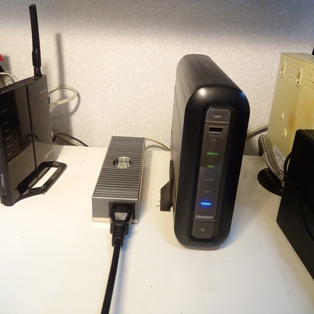 NASはQNAPのHDDタイプを使用。12V/3Aだ。ボディは堅牢で振動に強く、メインのストレージとして重宝している。ACアダプターの交換で音の鮮度が向上