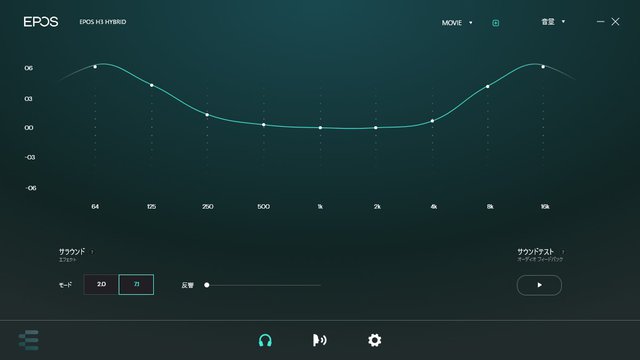 EPOS Gaming Suiteのヘッドフォン設定。バーチャルサラウンドも設定できる