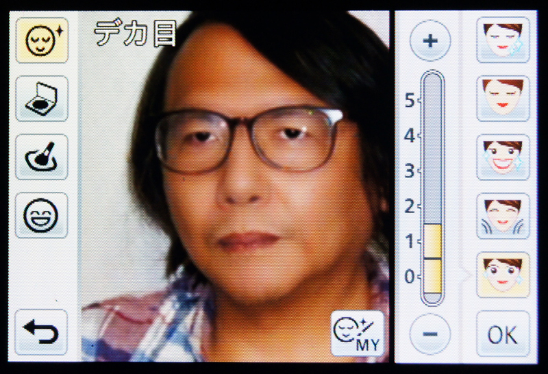 全ての「エステレタッチ」を適用したところ。デカ目はちょっと抑え気味にした。左の写真と比べると、顔がスッキリし、かなり印象アップ