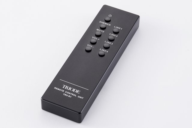 アルミ製で重厚感のあるリモコン。電源のON/OFFやボリューム調整、入力切り替え、液晶表示の明るさ調整など一通りの操作が可能