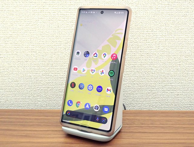 Google Pixe 6シリーズとの使用に最適化したワイヤレス充電器「Pixel Stand Gen 2」にPixel 6 Proを設置