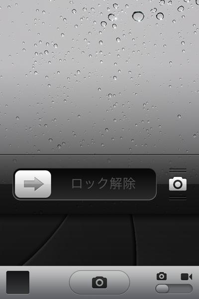 ロック画面の右下に表示されるボタンを上方向へドラッグすると、カメラが起動する