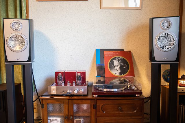 昨年末に自宅に導入したばかりのパラダイム「Persona B」。トライオードの真空管アンプとティアックのアナログプレーヤーを組み合わせて