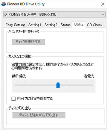 カスタムエコ機能設定画面(※Windowsのみ対応/設定にはドライブユーティリティが必要)