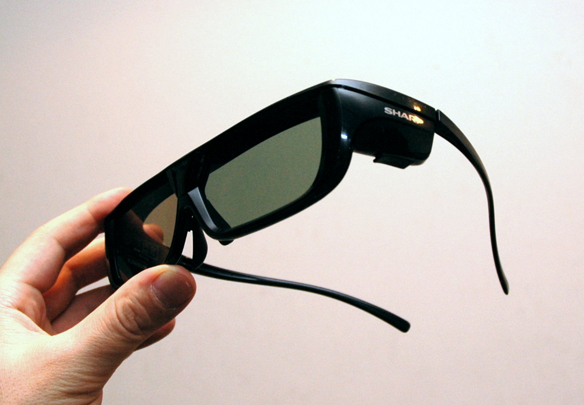 本機の3Dメガネ。メガネフレームメーカーの増永眼鏡(株)と協業し、従来比で約40%の軽量化を実現