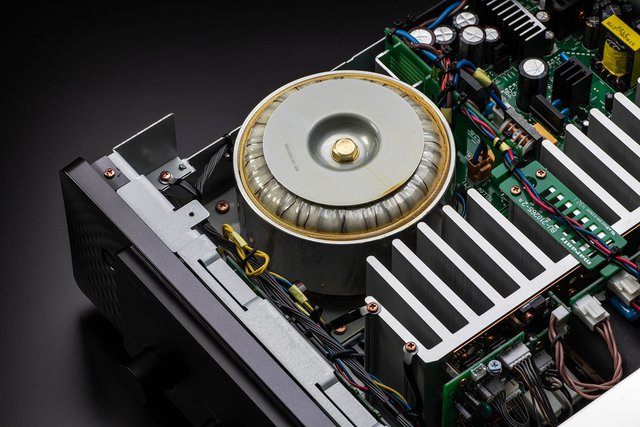 クラス最大級の129mm、3.4kgの巨大なトロイダルトランスと18,000μFのブロックコンデンサを搭載