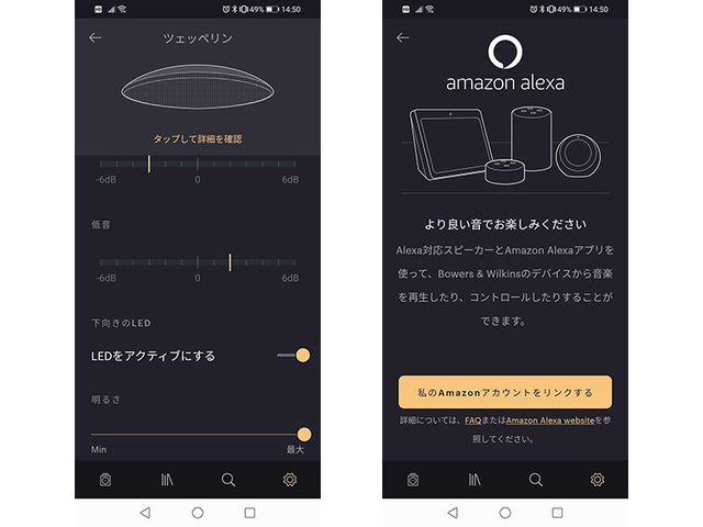 アプリで好みの音質に調整したりAlexaとの連携設定を行うことも可能