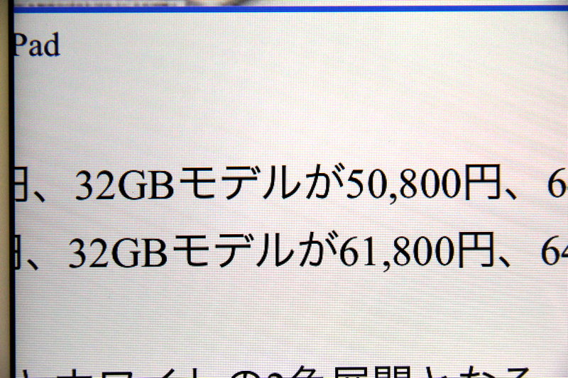 iPad 2で表示した文字。拡大してその違いを確かめて欲しい