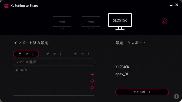XL Setting to Shareではモニター設定をファイルとしてインポート/エクスポートできる
